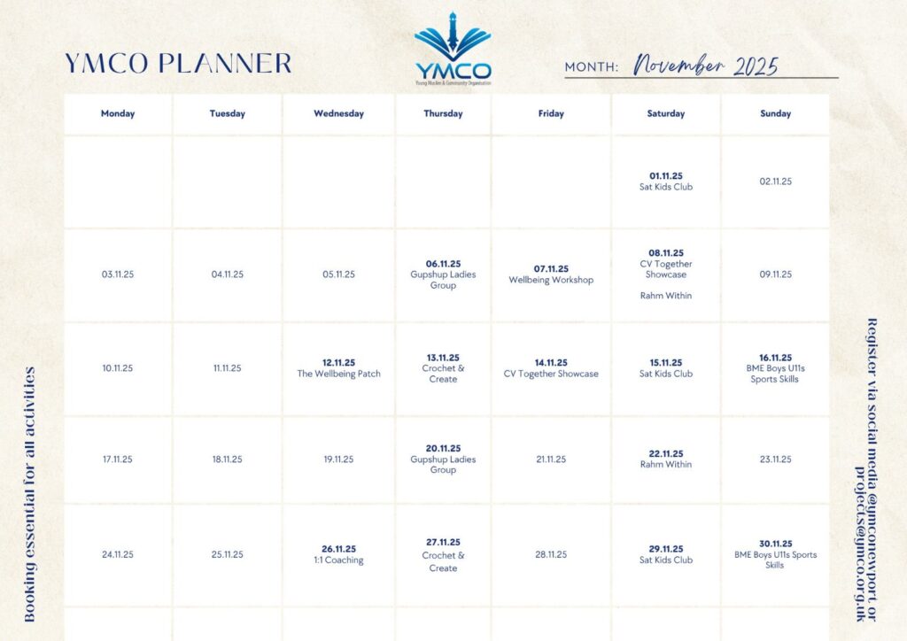 Booking and registration are *essential* for all activities and projects this month! Please take note of changes in regular activities and events. Rahm Within https://forms.gle/bWekPP1U5WqTCxF18 BME Boys U11 Sports Skills https://forms.gle/CdjZWk7ua5rMnJC86 Saturday Kids Club Closed registrations. When we have space we will update you. The Wellbeing Patch https://forms.gle/AABjdahJcEDxjbjr9 Gupshup Ladies Group Closed registrations. When we…